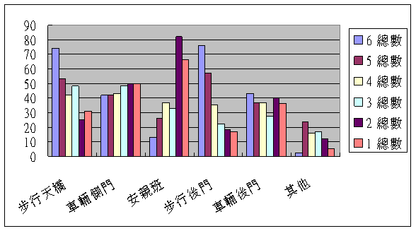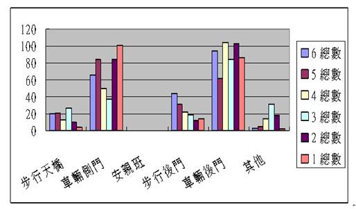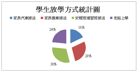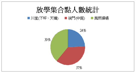 1. 放學路隊以前側門車輛接送放學的最多,其次是走天橋回家的同學。